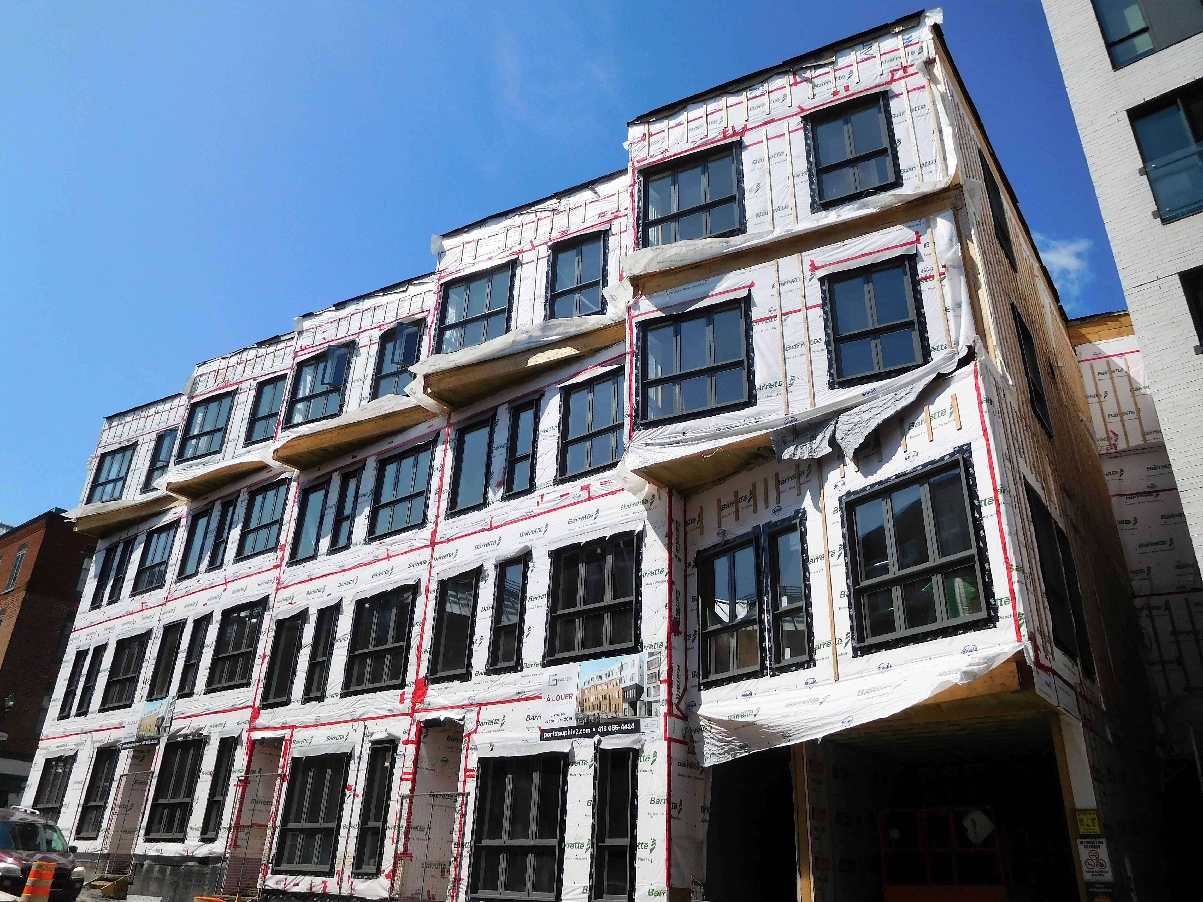 The Port-Dauphin Apartments Phase 2 project is a multi-residential building located in Old Quebec. This four-story building, constructed with a light wood frame, is situated between Rue des Vaisseaux du Roi and Ruelle de l'Ancien-Chantier, in the heart of the Old Port of Quebec. The building houses 25 units, a rooftop terrace with a walkway, and an underground parking garage. The expertise of Groupe Genius in light wood frame structures and multi-residential buildings enabled the successful completion of this project, despite the challenges posed by its numerous different levels, cantilevered structures, and location in a confined space.